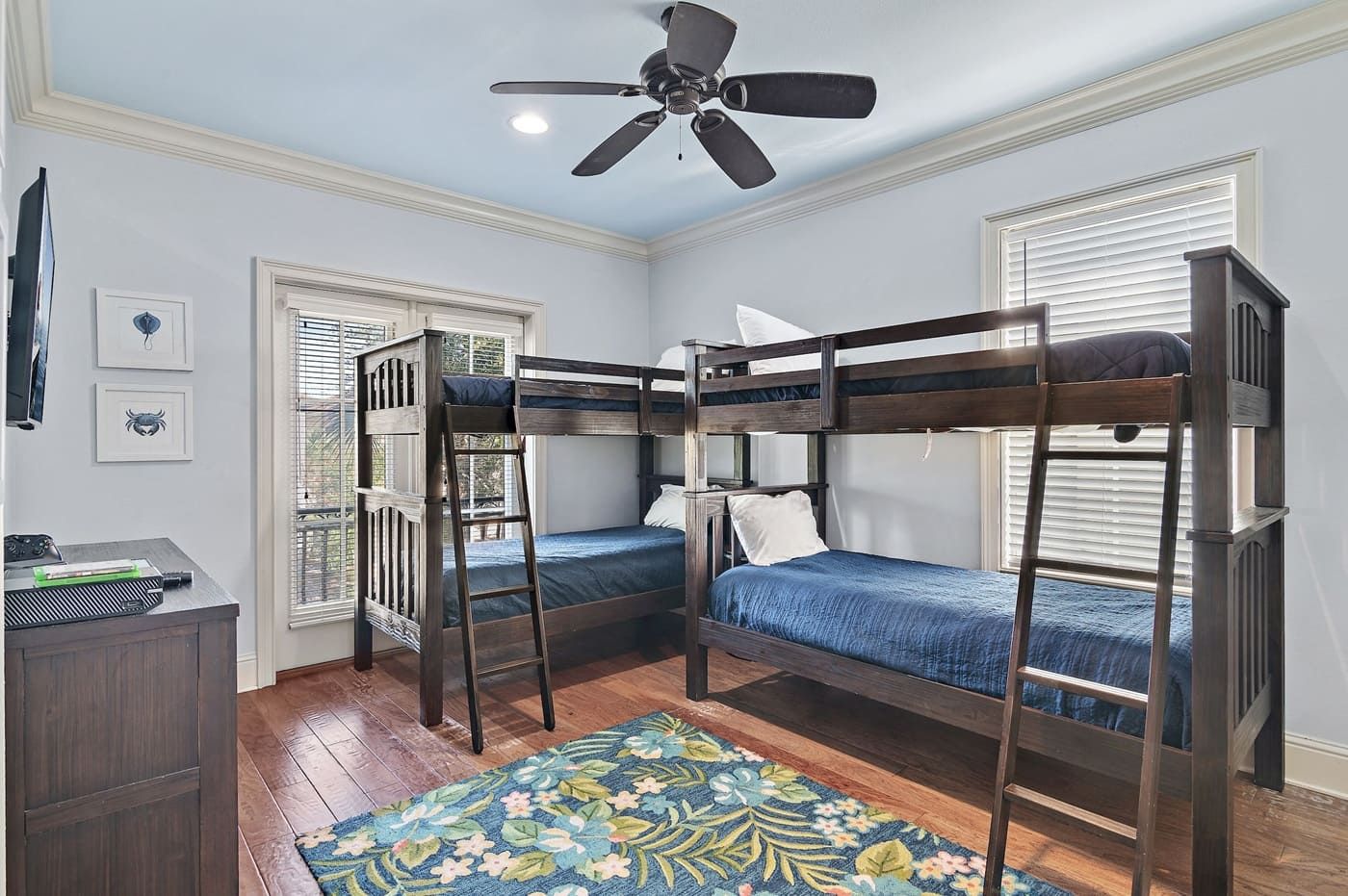 - Bunk Room: Perfect for kids or young-at-heart guests, this second-floor room features two bunk beds (sleeps 4), an attached en-suite, and a fun bonus—an Xbox with two controllers and two games! Bring your favorite games from home for even more entertainment.